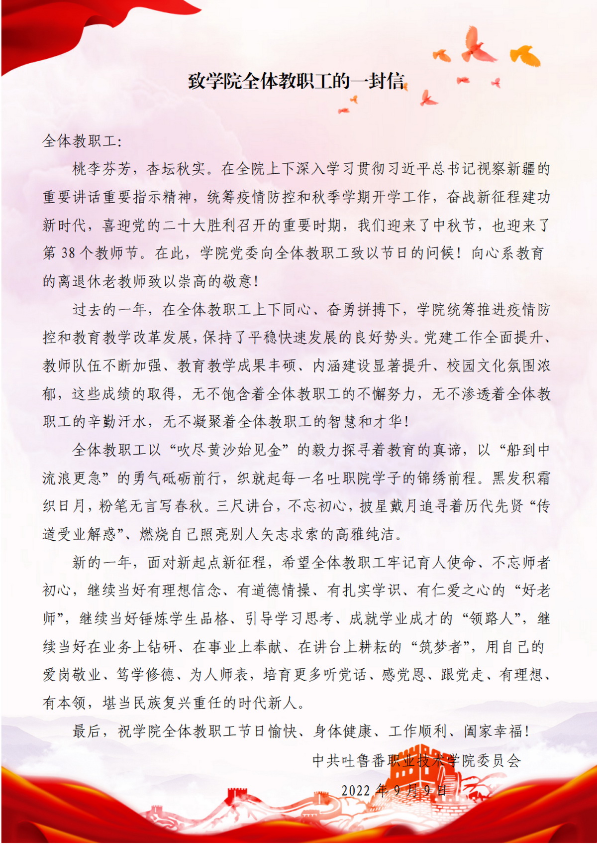 “迎接党的二十大,培根铸魂育新人”新时代的教师要始终坚守“为党育人、为国育才”的初心使命。坚守“学高为师、身正为范”的职业操守。坚守“使命在肩、奋斗有我”的奋斗姿态。坚守“创新实干、事争一流”的进取精神。